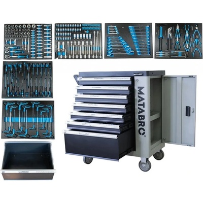 Matabro MB-TC04, Dílenský vozík s nářadím | 7 zásuvek | 299 ks Matabro Profesionální dílenský vozík s 299 ks nářadí. Dílenský vozík je vyroben z vysoce kvalitních materiálů...