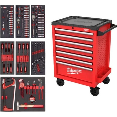 Profesionální dílenský vozík vybavený celkem 246 ks nejpoužívanějšího nářadí. Samotný vozík obsahuje 7 uzamykatelných zásuvek vybavených nářadím v pěnových výplních....