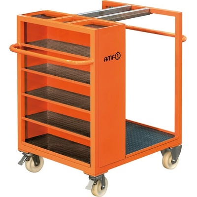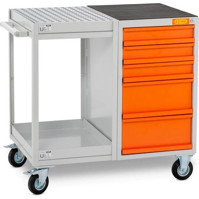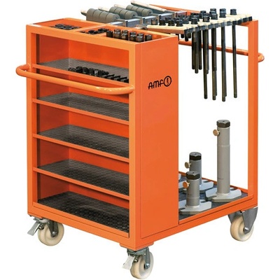 Poznámky: - Robustní ocelová konstrukce - Úložné prostory s gumovými podložkami - na 4 kolečkách (2 z nich s aretační brzdou) - Podle potřeby lze zvolit držáky pro upínky...