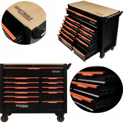 Dílenský vozík, 12 zásuvek, dřevěná deska - KRAFT&DELE Dílenský vozík představuje praktické a spolehlivé řešení pro organizaci nářadí v dílně, garáži či autoservisu. Nabízí...