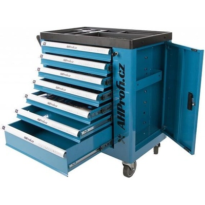 PROFI dílenský vozík s 8 uzamykatelnými zásuvkami a úložným prostorem s dvířky. Sestava je vybavena 375 kusy profesionálního nářadí vhodného do PROFI dílen. Dílenský vozík je...