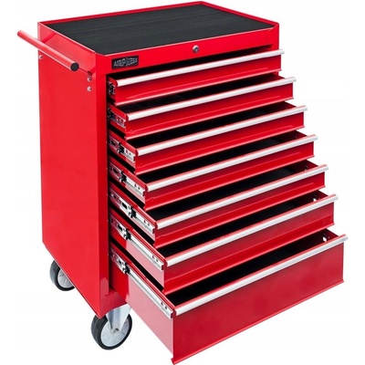 Dílenský vozík s plným výsuvem zásuvek s kuličkovými ložisky. Má ergonomickou tlačnou rukojeť a ochranu hran. Velký úložný prostor na vrchu a zásuvky na malé součástky a nářadí...