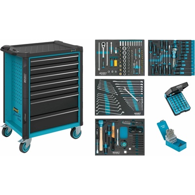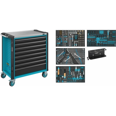 Dílenský vozík s kolečky a sedmi zásuvkami s výbavou nářadí 219ks