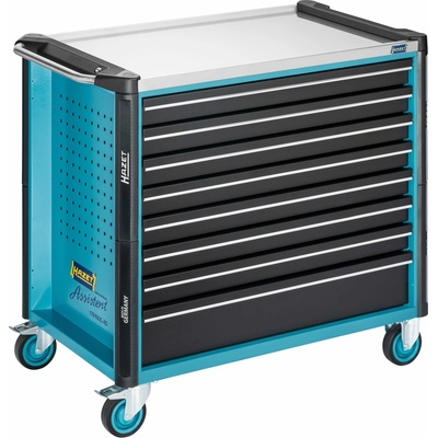 Dílenský vozík s plným výsuvem zásuvek s kuličkovými ložisky. Má ergonomickou tlačnou rukojeť a ochranu hran. Velký úložný prostor na vrchu a zásuvky na malé součástky a nářadí...