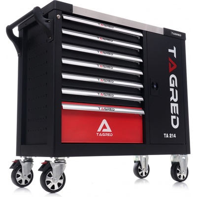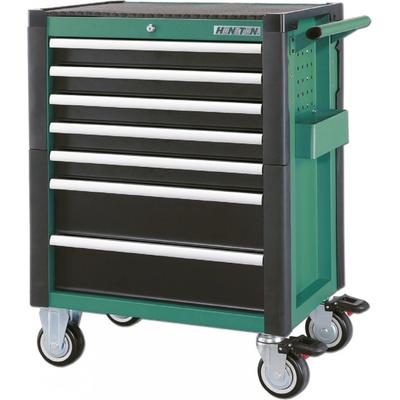 Praktická a prostorná dílenská skříňka se 7 zásuvkami a bočním úložným prostorem. Pevná konstrukce zaručuje dlouhodobé použití v dílenských podmínkách, zatímco 4 kola, včetně 2...