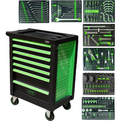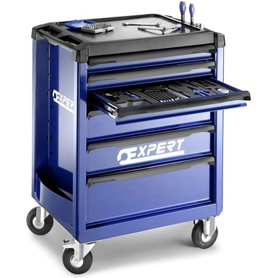 PROFI dílenský vozík s 7 uzamykatelnými zásuvkami je vybavený 164 ks profesionálního nářadí vhodného do PROFI dílen. Dílenský vozík je celokovový, samotná pracovní plocha...