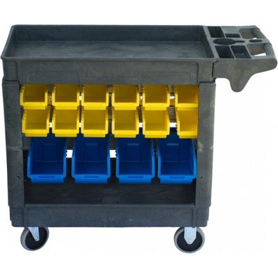Dílenský vozík se 3 policemi, vhodný do dílny nebo garáže. Na velkých kolech se vozík dobře přesouvá, má lehký chod. Na všech třech policích je vyjímatelná protiskluzová pěnová...