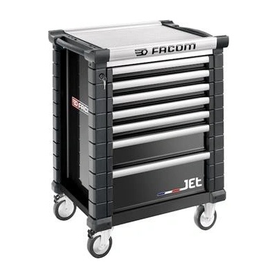 Robustní dílenský vozík se 6 zásuvkami Vozík s 6 zásuvkami Blokovací systém Lock & Go! zamezuje otevření šuplíků při pohybu vozíku 100% otevíratelné zásuvky se skluznicemi...