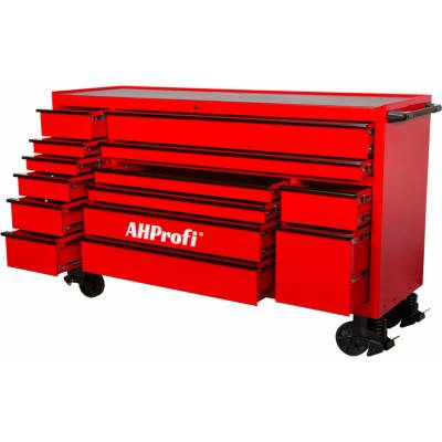 Velký dílenský vozík 1815 × 559 × 1114 mm, 14 zásuvek z toho 2 extra široké, 2 pevná a 2 otočná 6" odpružená kola, kuličkové pojezdy se 100% výsuvem, nosnost pojezdů až 54...