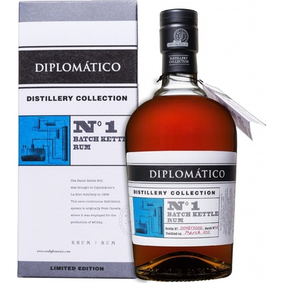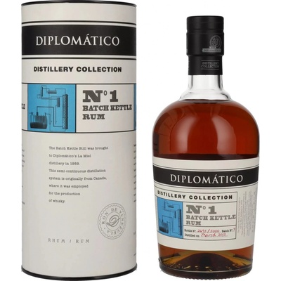 Diplomático Distillery Collection Nº 1 Batch Kettle Rum 47% 0,7lO produktu Diplomático Distillery Collection Nº 1 Batch Kettle je limitovaná edice rumu, která představuje první díl série, jež má za cíl představit různé destilační metody a sudy používané v palírně...