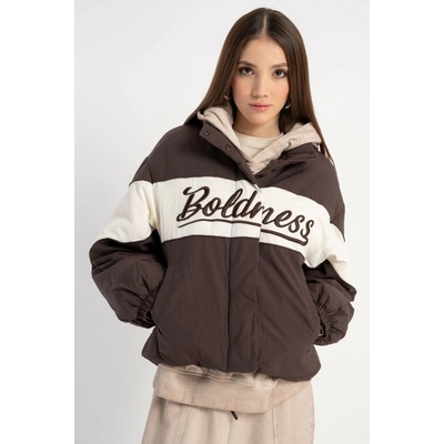 Dívčí hnědá zateplená bunda bez kapuce, zapínaná na krytý zip volný střih, délka do pasu, dlouhé rukávy zakončené všitou vnitřní gumou, spodní lem s možností úpravy obvodu,...