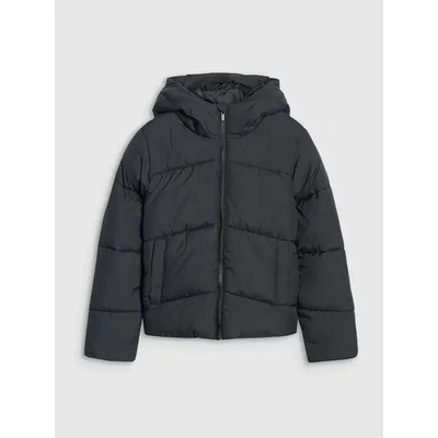 Dívčí černá dlouhá zimní prošívaná bunda s kapucí, zateplená - volný střih, - dlouhý rukáv, - rukáv zakončený gumou všitou uvnitř, - zapínání na zip, - prostorná kapuce, -...