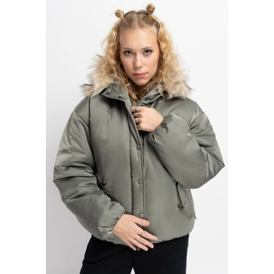Dívčí khaki zimní bunda s kapucí a kožešinovým límcem - volný střih, - dlouhý rukáv, - rukáv a spodek zakončeny gumou všitou uvnitř, - zapínání na zip a patentky, - prostorná...