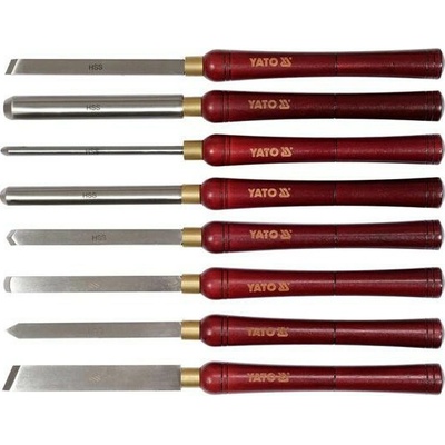 8-dílná sada soustružnických dlát na dřevo (délka cca 40 cm). Baleno v dřevěné krabici.