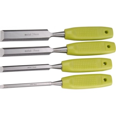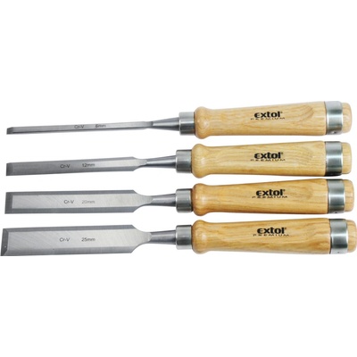 Dláta sada - 4 ks. Čtyřdílná sada dlát v šířkách 8, 12, 19 a 25 mm je ideální pro hobby použití a drobné práce se dřevem. Každé dláto je opatřeno ergonomicky tvarovanou rukojetí...