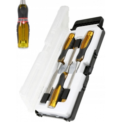 - Sada dlát na dřevo - čepel je kovaná z vysoce legované CrV oceli tvrzená po celé délce - zkosené boční hrany - rozměry dlát: 6, 12, 18, 24 mm - plastová rukojeť -...