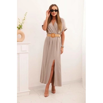 Letní dámské šaty s páskem - Italská móda Barva: - fango -hnědobéžová Ideální pro Váš volný čas, velmi příjemný materiál. Šaty v MAXI délce krátký spadený rukáv výstřih je...