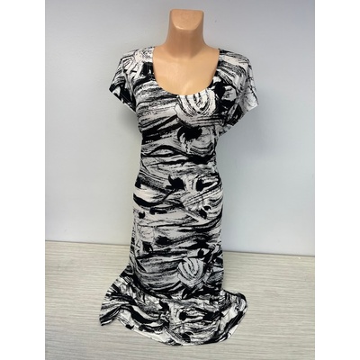 Zdůrazněte Vaši ženskou krásu v dlouhých šatech s výstřihem do V a potiskem. Svěží lehký krepon. Rozšířený střih. Výstřih do V. Krátké rukávy. Prsní záševky. Vysoko v pase...