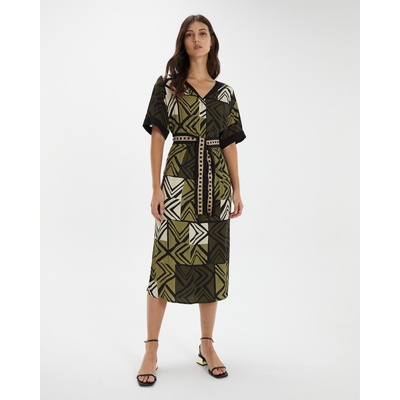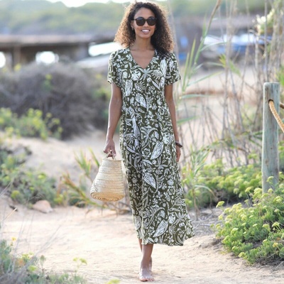 Úžasné tropické květinové šaty z lehkého a prodyšného viskózového popelínu, které nabízejí uvolněnou a zároveň lichotivou siluetu. Záhyby na předním díle a boční rozparky...