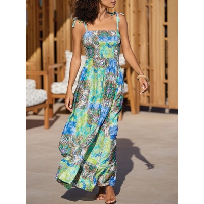 Bavlněné dvoubarevné dlouhé šaty na ramínka. Šaty jsou z příjemného, lehoučkého materiálu. U krku je žabičkování, a jsou volnějšího střihu. Délka šatů je ke kotníkům.