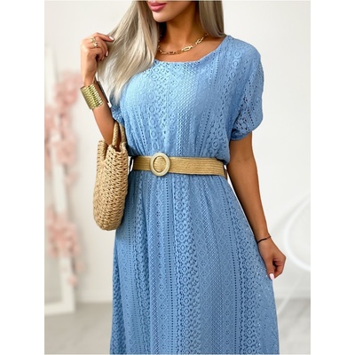 Dlouhé krajkové šaty s páskem a volánky. Romantické šaty boho s podšívkou, kulatý výstřih, krátké rukávy. Jemné krajkové šaty jsou ztělesněním vytříbené a velice ženské...