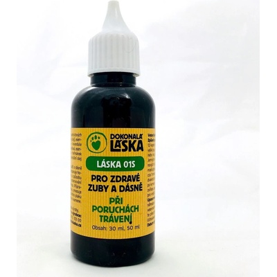 DOKONALÁ LÁSKA 01S pro zdravé zuby a dásně při poruchách trávení 30ml Přípravek pro dentální hygienu psů Specifikace produktu - čistě přírodní přípravek pro domácí péči o psí zuby a dásně při poruchách trávení - u psů s poruchou trávení tuků, s cukrovkou, s...
