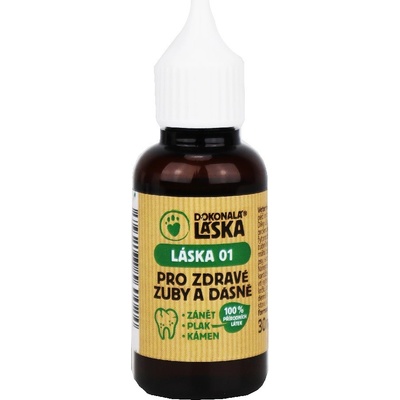 DOKONALÁ LÁSKA 01S pro zdravé zuby a dásně při poruchách trávení 30ml Přípravek pro dentální hygienu psů Specifikace produktu - čistě přírodní přípravek pro domácí péči o...