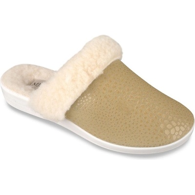 Oblíbený model dámských pantoflí. Pohodlný klínek, tvarovaná stélka. Kvalitní domácí obuv chrání Vaše nohy a klouby, hlavně v případě tvrdých povrchů. Na boku gumička, vhodné i...