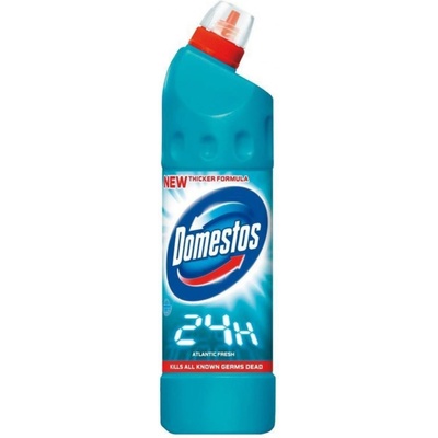 Domestos WC čistič 24h Atlantic Fresh, 750 ml Tekutý čisticí a dezinfekční přípravek je určený k čištění a dezinfekci silně znečištěných míst a zejména tam, kde se mohou vyskytovat bakterie nebo plísně.