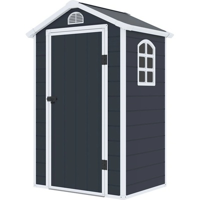Plastový domek na nářadí Bergen od společnosti CoverTech najde na zahradě mnohostranné využití a má zajímavý skandinávský vzhled. - Místo pro visací zámek - Okno, které lze...