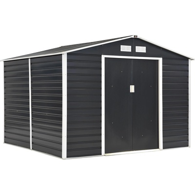 Celokovový zahradní domek na nářadí, nástroje a příslušenství. Odolný vůči povětrnostním vlivům, pultová střecha, s větracími otvory, snadná montáž, dodává se nesmontovaný.