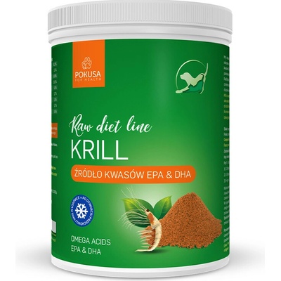 POKUSA RawDietLine Krill - doplňky stravy pro psy a kočky - 700g Bez sóji: Ano Typ balení: Plastová nádoba Psí plemeno: Jakékoli plemeno Specifické potřeby zvířete: Kůže a...