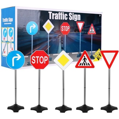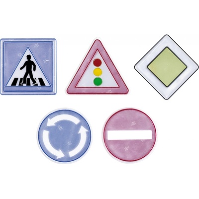 Hra a vzdělávání v jednom! Set 5 plastových dopravních značek: Stop, Dej přednost v jízdě, Přikázaný směr jízdy, Hlavní silnice a Přechod pro chodce. Pomocí značek si dítě...