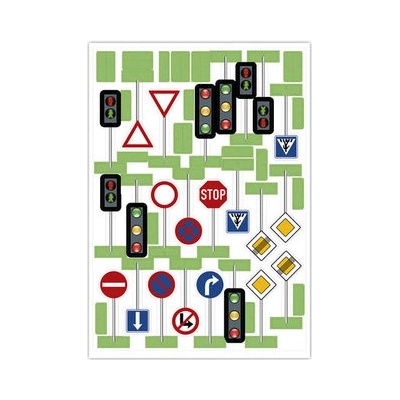 Sada obsahuje 11 obrubníků, celková délka 100 cm, 23 silničních ostrůvků, 25 kanálů, 60 dopravních značek a 301 samolepek. Určeno pro velikost H0. Nevhodné pro děti do 15...