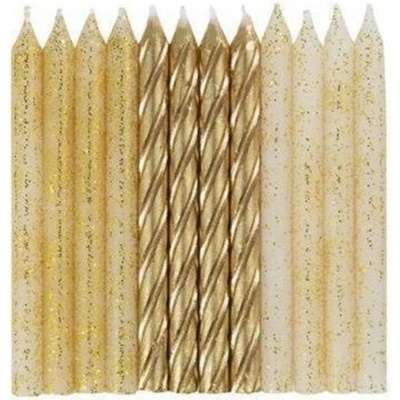 Dortové svíčky ve zlaté barvě, 2 druhy - třpytivé a se spirálami, 7cm velké. Tento set neobsahuje podstavce pro zápich do dortu. Postup: Svíčku zapíchneme do dortu nebo do...