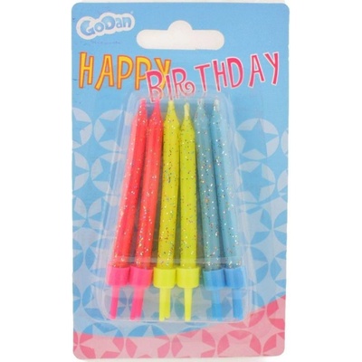 Dortové svíčky modré s glitry a držáky 10 ks Výška svíčky je 6 cm Narozeninová oslava bez dortu? To určitě ne! A na každý dort patří dortové svíčky, ať je může oslavenec...