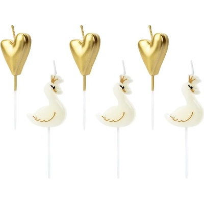 Narozeninové svíčky Lovely Swan, mix barev, výška cca 3,5-4 cm. (1 balení / 6 ks)