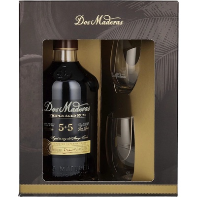 Rum Ron Dos Maderas 5+5 40% 0,7l + 2 skleničky je skvělý dárek pro milovníky rumu. Tento rum je výjimečný svým třífázovým zráním, které mu dodává bohatou a komplexní chuť....