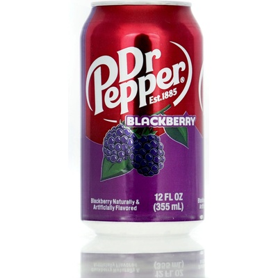 Dr Pepper Blackberry USA 355ml Americká limonáda Dr Pepper s nezaměnitelnou, unikátní příchutí ostružin, objem 355ml, vyrobeno v USA. Podávejte chlazené. Vyrobeno v USA. Složení perlivá voda, kukuřičný sirup s vysokým obsahem fruktózy a méně než 2%, karamelové...