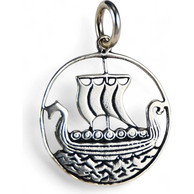Přívěšek drakkaru - vikinské nájezdnické lodi. Materiál: stříbro 925 Velikost: 2.2 x 3.6 cm Váha: 4g