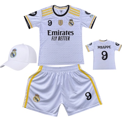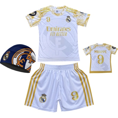 Premium dětský fotbalový dres + fotbalová pletená čepice Real Madrid FC Fly beter - Kylian Mbappé 9