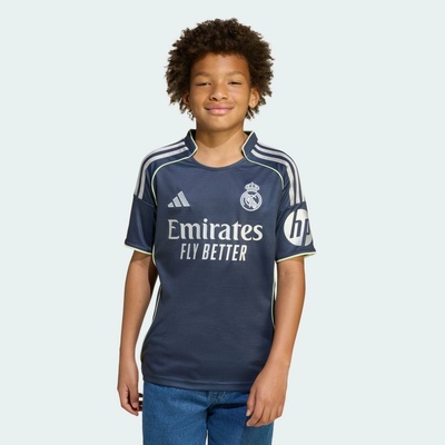 Světově proslulý stadion Realu Madrid vstupuje do zcela nové éry a tento dětský venkovní fotbalový dres Adidas Real Madrid 25/26 v modrém barevném provedení vzdává hold...