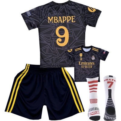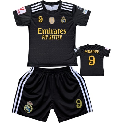 Premium dětský fotbalový dres Komplet Real Madrid FC Black - Kylian Mbappe.Č09,(Emirates Fly Better)