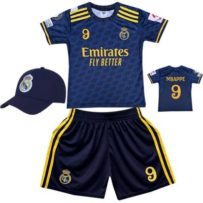 Premium dětský fotbalový dres + fotbalová kšiltovka - Real Madrid FC Emirates Fly Better - Kylian Mbappe 9