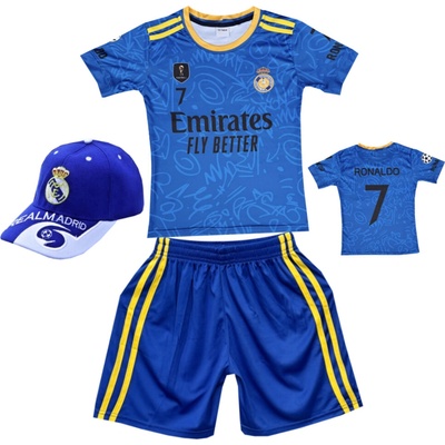 Dětský fotbalový dres Komplet + fotbalová kšiltovka modrý FC Real Madrid - Ronaldo CR.07