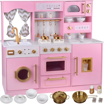 Bílo-růžová dřevěná kuchyně Která holčička by si ráda nehrála na rodiče nebo opatrovníky a nepřipravovala chutné pokrmy? Většina batolat má velkou radost z toho, že může pomáhat...