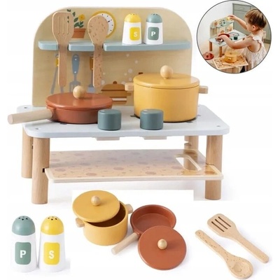 Dřevěná mini kuchyňka pro děti - KD08 Proměňte každodenní zábavu v kulinářské dobrodružství! Dřevěná kuchyňka značky PROMIS je ideální volbou pro malé milovníky vaření....