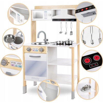 Kvalitní a do detailu zpracovaná dřevěná kuchyň Eco Toys jistě nadchne všechny malé hospodyňky. Vše vyrobené z důrazem na bezpečnost, všechny hrany zaoblené a hladké....