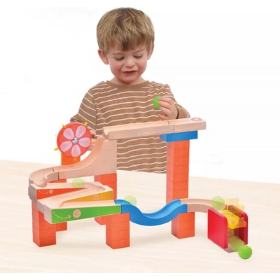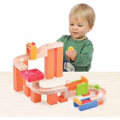 Stavebnice má mnoho variant poskládání a rozvíjí logické myšlení. Nejdůležitější však je, aby byly jednotlivé díly sestaveny tak, aby se kulička bez problémů dokutálela do svého...