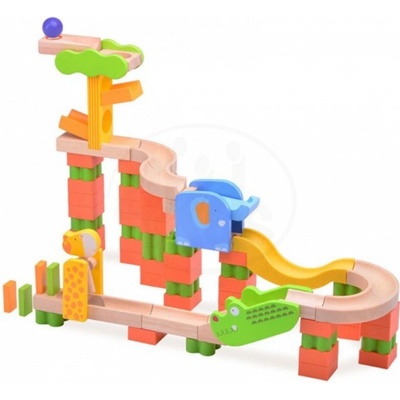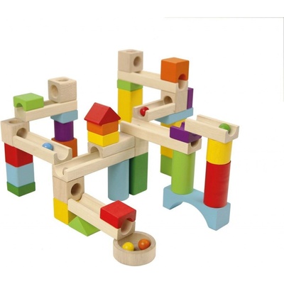 Stavebnice v podobě dřevěné kuličkové dráhy, která se skládá z dřevěných dílků různých tvarů, barev a velikostí. Baleno v krabici. Kuličky jsou součástí balení. České dřevěné...